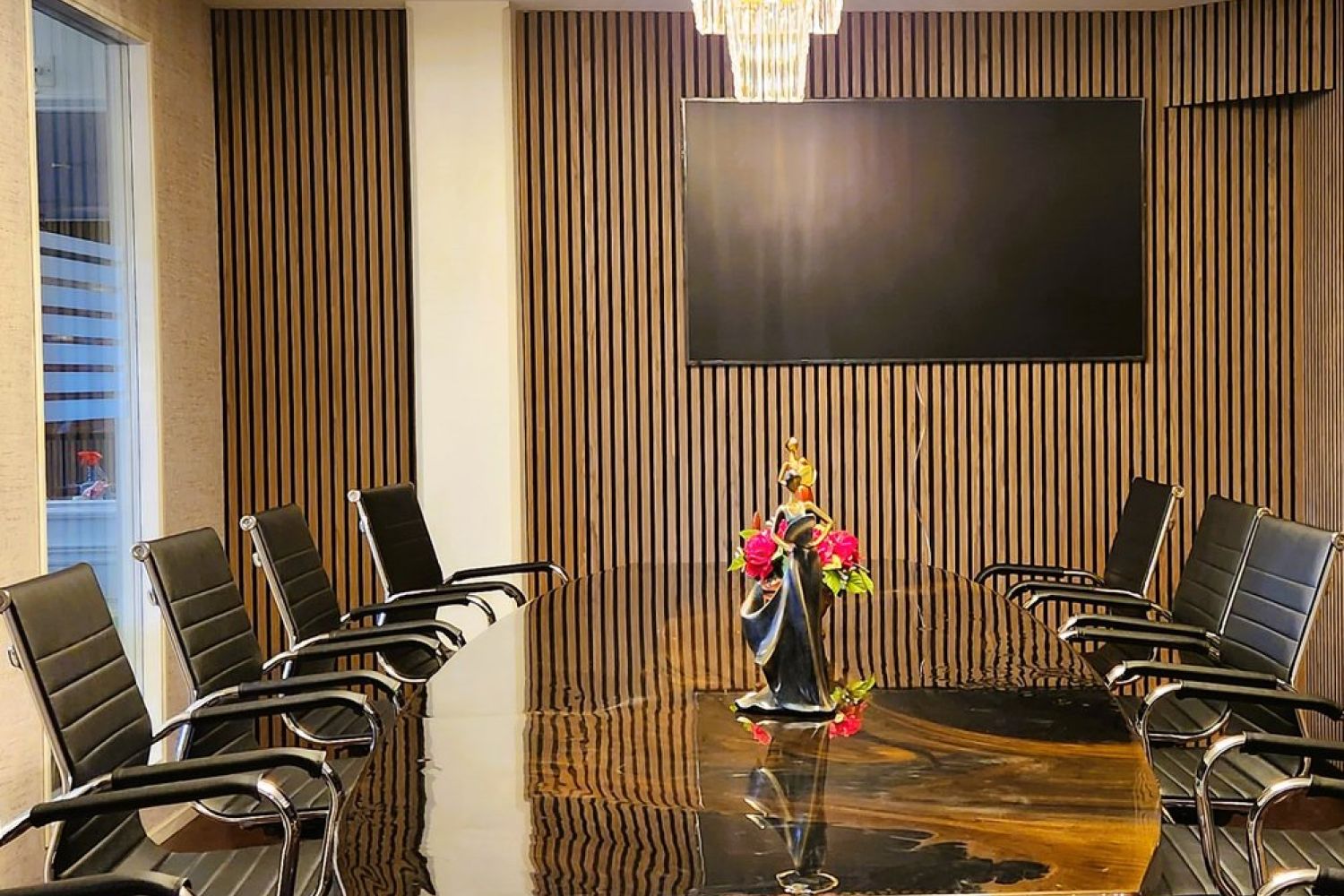 Lilla konferensrummet är vårt mindre mötesrum, perfekt för möten med 4–8 personer. Rummet erbjuder en bekväm och intim miljö, utrustat med en TV för presentationer och videomöten. Här kan ni arbeta ostört och effektivt i en trevlig atmosfär